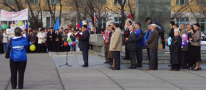 Праздник труда в Туве сегодня отметили первомайской демонстрацией, в которой приняло участие несколько тысяч человек. Праздничные колонны проследовали по улице Ленина от городского парка до центральной площади, где у памятника Ленина состоялся митинг. С приветствием к собравшимся обратился Председатель Правительства Тувы Шолбан Кара-оол.