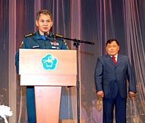- Я бы хотел, прежде всего, выполнить поручение, данное мне председателем правительства России Михаилом Фрадковым. Передать его поздравления, и надежды. Надежды на то, что Шолбан Валерьевич Кара-оол вместе с теми, кого он взял с собой в этот трудный путь, выполнит все те обещания и все те задачи, которые он поставил перед собой.
