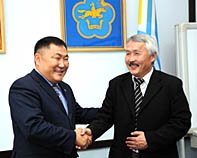На фото: председатель Политсовета тувинского регионального отделения ВПП "Единая Россия" Шолбан Кара-оол и председатель тувинского республиканского отделения Аграрной партии России Дадар-оол Дан-Сюрюн