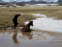 Уровень воды в Енисее в районе столицы Тувы Кызыла во время пика весеннего половодья может превысить отметку, при которой начинается подтопление жилого сектора, но только при резком таянии снега, сообщила в пятницу РИА Новости начальник отдела гидронаблюдений тувинского республиканского Гидрометцентра Татьяна Губина. "На основании данных аэровизуального обследования снегозапасов в Верховьях Енисея, проведенного в конце апреля, и последних фотосъемок, мы скорректировали прогноз по уровням.