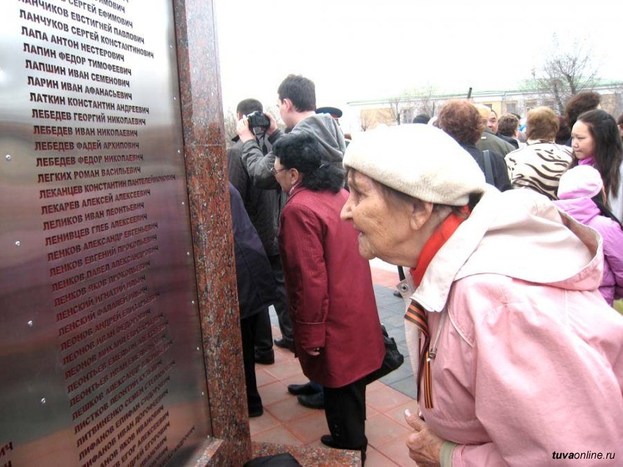 3254 имени участника Великой Отечественной войны, призванных из Тувинской Народной Республики в 1941-1945 годах, увековечены на стелах в обновленном мемориале Памяти. После его открытия в адрес Минтруда республики, военный комиссариат, архив поступило свыше ста новых обращений с просьбой увековечить память солдата из Тувы. В Министерстве труда и социальной политики под руководством замминистра Амура Хоюгбана состоялось заседание рабочей комиссии по дальнейшему формированию списков.