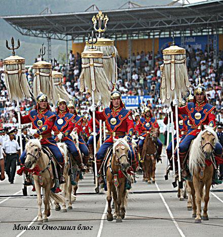 Сегодня, 11 июля, тувинские чабаны, выехавшие в столицу Монголии город Улан-Батор на юбилейные торжества, участвуют в открытии национального праздника Наадам. Здесь состоится церемония выноса 9-знамён Чингис-Хаана из Дворца государства и выступит Президент Монголии Цахиагийн Элбэгдорж. Праздник продолжит специальное театрализованное представление и зрелищные соревнования по национальной борьбе с участием более 1000 сильнейших борцов. Кроме этого, состоится показательное выступление сильнейших лучников по национальному лучному спорту.