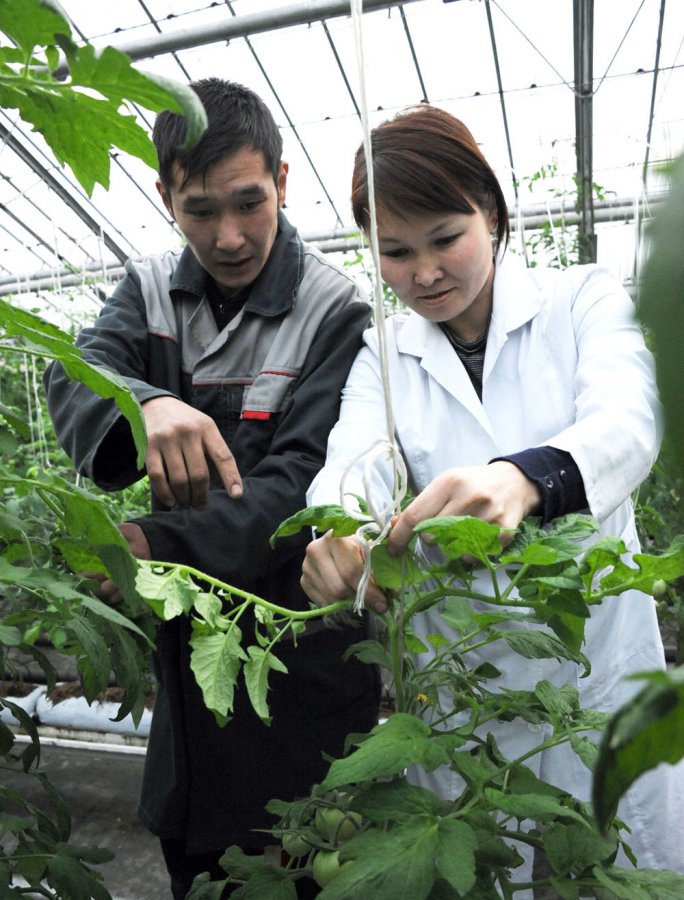ГУП «Тепличный комбинат» Кызылского района в эти дни в ожидании очередного урожая витаминной продукции. Две теплицы заняты под томатами, одна – под огурцами.