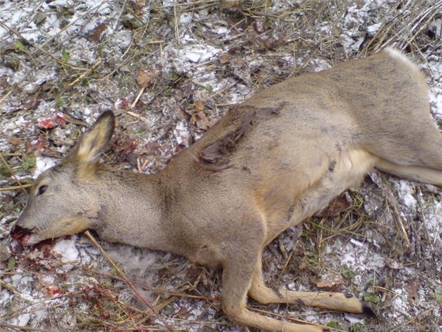 В ходе досмотра транспортного средства в багажнике были обнаружены и изъяты 8 полимерных мешков, в которых находилось мясо 12 разделанных туш сибирской косули. В автомашине находились двое пассажиров - нигде не работающие жители г. Турана. Полицейскими изъяты гладкоствольное ружье марки Сайга, 12 туш разделанных сибирских косуль.
