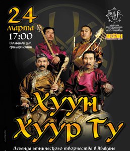 24 марта на сцене большого зала Хакасской республиканской филармонии выступит легендарная группа «Хун-Хурту» - пожалуй, самый известный этно-коллектив в мире. На страницах американского журнала «New York Times» концерты этой группы называли «музыкальным чудом», а в «San Francisco Chronicle» - «магией вокала», отмечает пресс-служба министерства культуры Хакасии. Каждая нота этой музыки уникальна, с еле уловимым шлейфом отголосков древности, величия гор и безмятежности равнин.