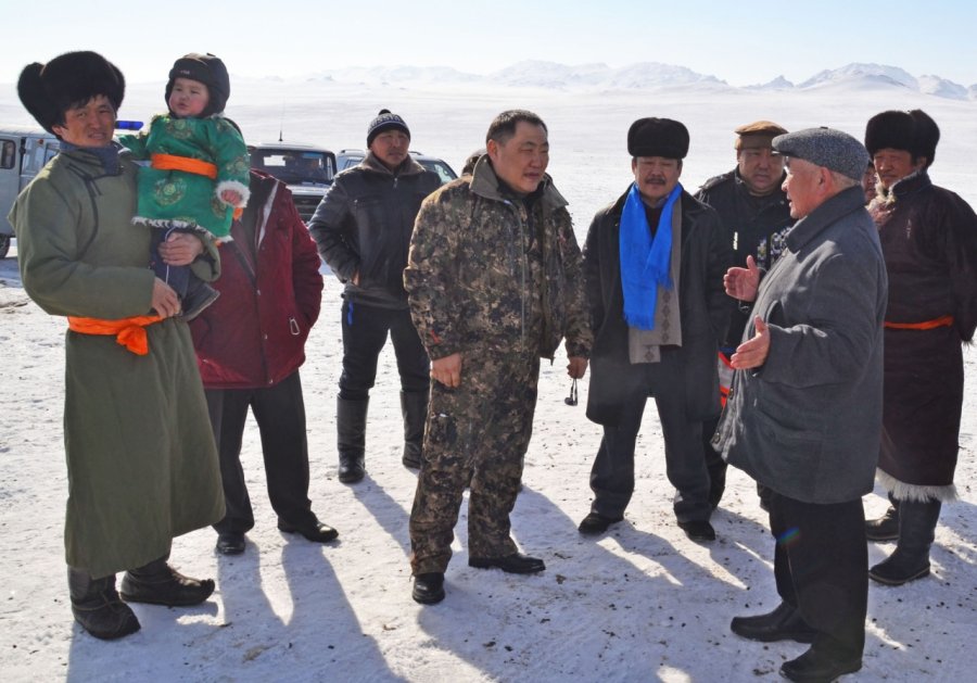 В юрте Танаа-Херела Эрендея и его супруги Долааны собрались чабаны из близлежащих стоянок. По их словам, зима нынче выдалась благополучной, особых проблем не возникало даже с хищными волками. Танаа-Херел показал главе республики новый зимник для скота, построенный собственными силами в прошлом году. В ходе разговора обсудили дальнейшее развитие СПК «Бай-Хол». Его руководитель Эртине Манзай рассказал о проделанной работе и новых планах, отдельно остановился на вопросах финансирования кооператива и необходимости интенсивного наращивания поголовья овцематок. Без убойного цеха, по его словам, чабанам очень сложно.