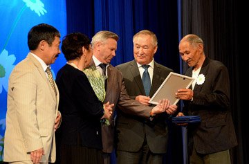 Первыми на сцену были приглашены Кенден Биче-оол Тулушевич и Кенден Роза Кыргысовна из Кызылского района. Достойная супружеская пара. Оба ветераны труда, заслуженные работники республики. Дети подарили им семерых внуков. Сегодня все они оправдывают надежды бабушки и дедушки – получили высшее образование и работают в различных отраслях республики: врачи, сотрудники МЧС, МВД. Ветераны проживают в поселке Каа-Хем. Несмотря на почтенный возраст, ведут активный образ жизни. Участвуют во всех общественно-значимых мероприятиях республики и района. Роза Кыргысовна – активист райженсовета.