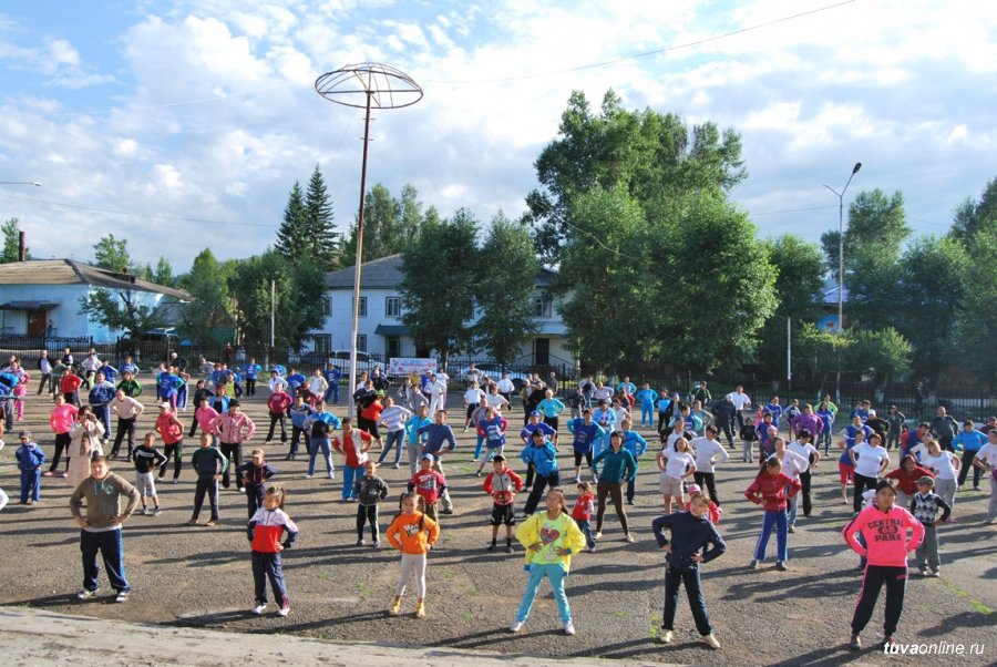 День начался в 8 часов утра с зарядки. Кызылский проект «Бодрое утро» перебазировался на площадку перед Домом культуры п. Хову-Аксы и собрал более 200 человек самых разных возрастов. И школьников, и представителей старшего поколения. Тон утренней гимнастики задавал Роберт Кунзек, тренер школы восточных единоборств «Чеди-Хаан». А ему ассистировал тренер из Китая Чжоу Дуньшань.