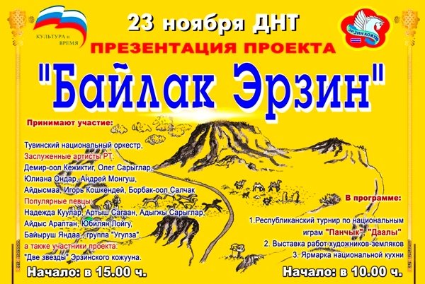 В воскресенье, 23 ноября, в рамках федерального партийного проекта «Культура и время» Эрзинское местное отделение ВПП «Единая Россия» проводит презентацию проекта «Байлак Эрзин».