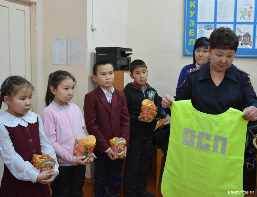 В этом году новогодние утренники для школьников инспекторы Госавтоинспекции Тувы провели под знаком «светлячков» - светоотражающих элементов.