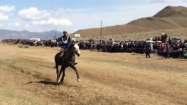 В Туве 25 апреля состоялись традиционные конные скачки, которые на этот раз были посвящены 70-летию победы в Великой Отечественной войне. Как и раньше, соревнования прошли в местечке Бора-Булак возле административного центра Дзун-Хемчикского района – города Чадана.