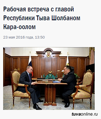 «Из теленовостей узнал, что сегодня наш Глава Шолбан Валерьевич Кара-оол встретился с Президентом Владимиром Владимировичем Путиным.