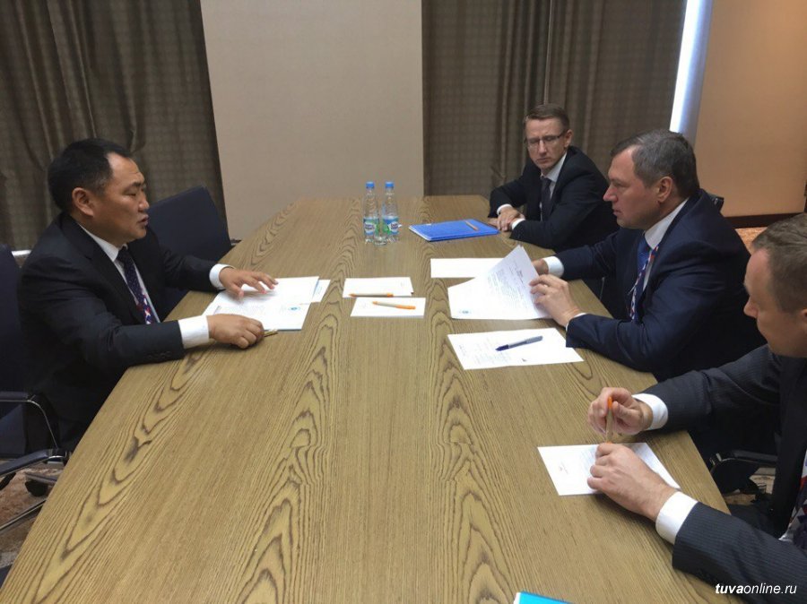 В Сочи в рамках международного инвестиционного форума состоялась рабочая встреча Главы Тувы Шолбана Кара-оола с генеральным директором «Россетей» Олегом Бударгиным.
