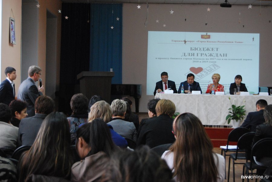 В Кызылском центре образования «Аныяк» прошли публичные слушания по проекту городского бюджета, в ходе которого был презентован информационный ресурс «Бюджет для граждан», в котором представлены основные положения главного финансового документа Кызыла на 2017 год и плановый период 2018 и 2019 годов. С параметрами расходов и доходов городского округа слушателей познакомил начальник департамента финансов мэрии Кежик-оол Тулуш.