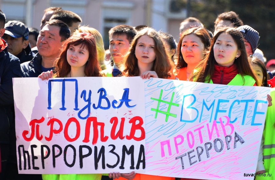 B Кызыле на площади Арата прошла гражданская акция "Вместе против террора". Более полутора тысяч человек собрались в знак солидарности с жителями Санкт-Петербурга, где 3 апреля в метро произошли взрывы. В результате погибли 14 человек, около 50 пострадали. Память погибших почтили в Кызыле минутой молчания. Трагедия сплотила миллионы россиян по всей стране, которые в эти дни объединяются в борьбе с любыми проявлениями экстремизма и терроризма.