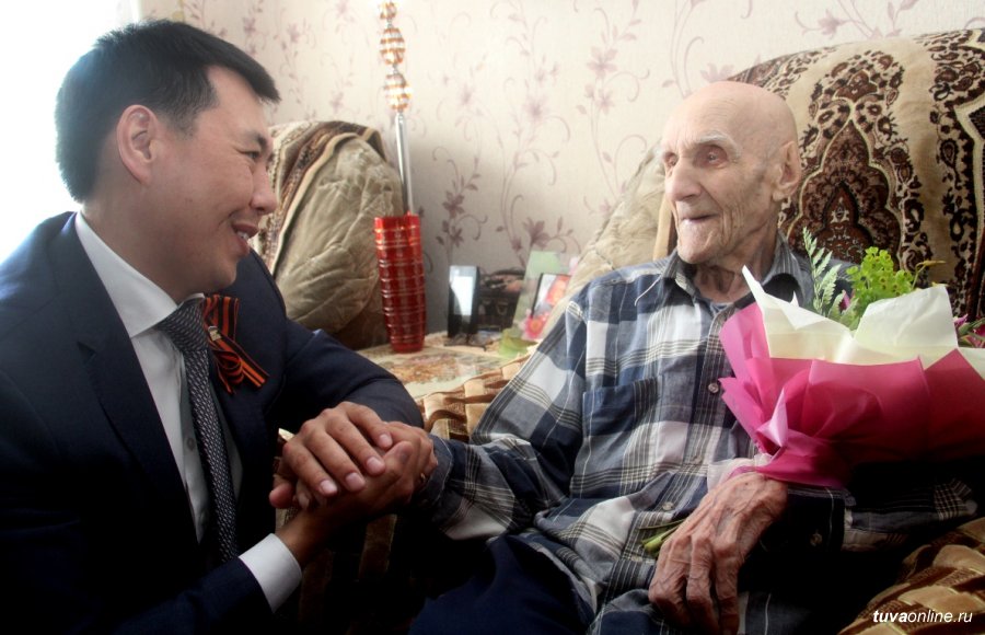 Депутат Государственной Думы Мерген Ооржак поздравил фронтовика Павла Тихонова с Днем Победы