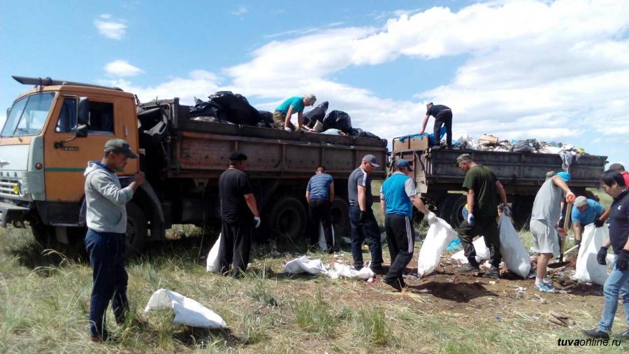 Силами трудовых коллективов удалось собрать разрозненно валяющийся мусор, но очень много оставалось в специально отведенных местах, огражденных профлистом с надписью «Для мусора». Оставшиеся отходы «отдыхающих» прошлого купального сезона до полуночи лопатами догружали в 2 КАМАЗа работники ГКУ «Дирекция по особо охраняемым природным территориям РТ» и «РГБУ «Природный парк «Тыва»» под чутким руководством министра Диинмея Балбан-оола.