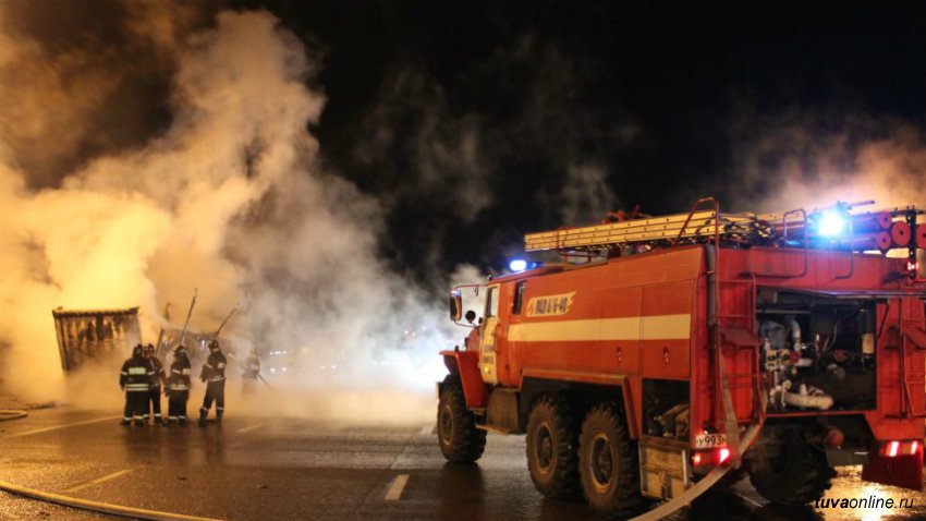 Сообщение о пожаре грузовой автомашины марки «МАЗ» припаркованной на открытой территории по улице Калинина города Кызыла поступило дежурному центрального пункта пожарной связи 28 ноября в 01 час 34 минуты.