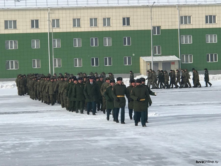 дислоцированной в правобережном микрорайоне Кызыла. На плац внесены знамена