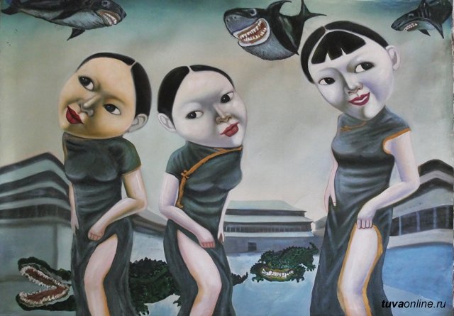 Женщина в азиатском платье поет без слов, расстелив на полу листы китайской рисовой бумаги. Она отламывает квадратики шоколада от обычной плитки и рисует ими, не переставая петь. В голосе слышны то звуки дикой тайги, то ветер над степью, то потусторонние послания духов, призванных шаманом. На листах возникают условные лица и фигуры. Вот вроде бы отдыхающий рыцарь, на которого с небес взирает то ли похожий на зверя Бог, то ли дьявол…