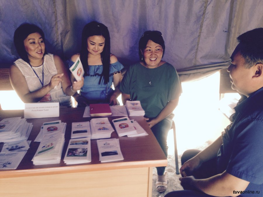 В этом году, в рамках празднования Дня животновода, на Тос-Булаке организован прием граждан. Сотрудники органов исполнительной власти республики предоставляли консультации по вопросам, которые волнуют людей чаще всего. Так что гости, прибывшие на Наадым со всех концов Тувы, имели возможность совместить приятное с полезным.
