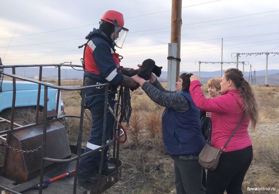 Тувинские вайбер-группы сердобольных любителей животных сегодня пестрели сообщениями о том, что на опоре линии электропередачи уже три дня сидит кот. Каким образом животное забралось так высоко гадать не стали, стали думать, как ему помочь. Энтузиасты общества "Хатико" обратились в АО «Тываэнерго», и специалисты сетевого предприятия сразу же откликнулись и приехали на помощь. Место, где кот забрался на опору находится в нескольких километрах от столицы Тувы, поселке Сукпак.