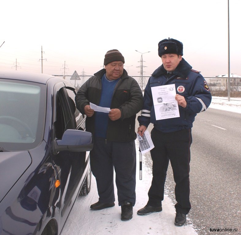 Сотрудники Управления ГИБДД МВД по Республике Тыва, Межрайонного регистрационно-экзаменационного отдела и дорожно-патрульных служб ОГИБДД УМВД России по г.Кызылу и МО МВД России «Кызылский» раздавали участникам дорожного движения листовки, проводили разъяснительные беседы с водителями транспортных средств.