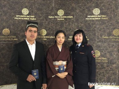 В торжественной обстановке бессрочные виды на жительство вручены гражданке Японии Тэрада Мао. Она не первый год живет в Кызыле. Окончив Кызылский колледж искусств, преподает японский язык учащимся школы № 2 города Кызыла. Такой же документ вручен гражданину Узбекистана Комолдину Буронову. Он трудится в сфере торговли.