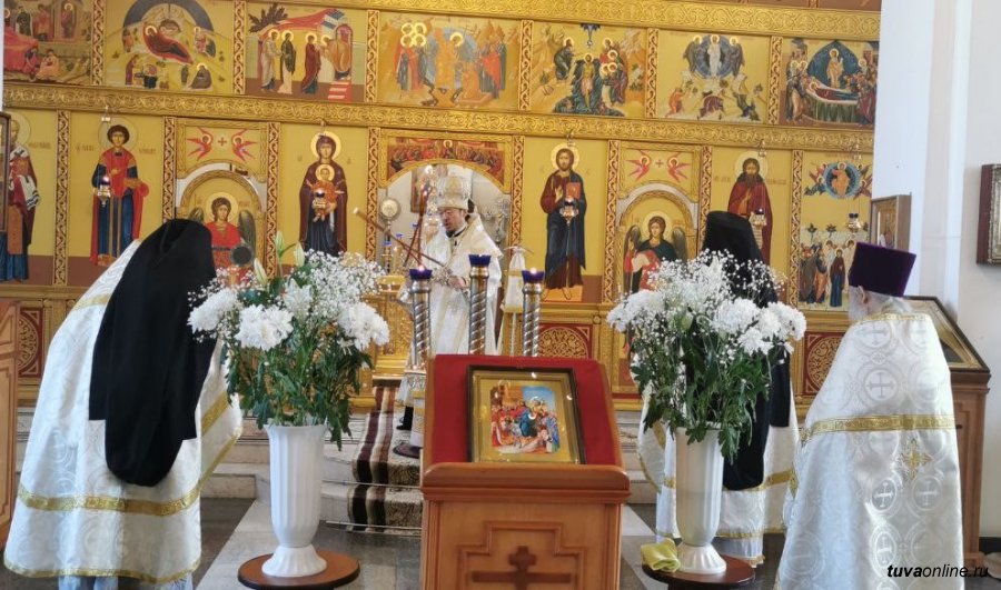 Сегодня, в субботу шестой седмицы святого Великого поста, именуемую Лазаревой субботой, архиепископ Корейский Феофан, временно управляющий Кызыльской епархией, возглавил праздничное богослужение в главном храме Тувы, Воскресенском кафедральном соборе города Кызыла. Преосвященному владыке Феофану сослужили иеромонах Амвросий (Громов), иеромонах Нил Ермаков, иерей Вивиан Тасханов, диакон Димитрий Уваров и диакон Алексей Паркачев.