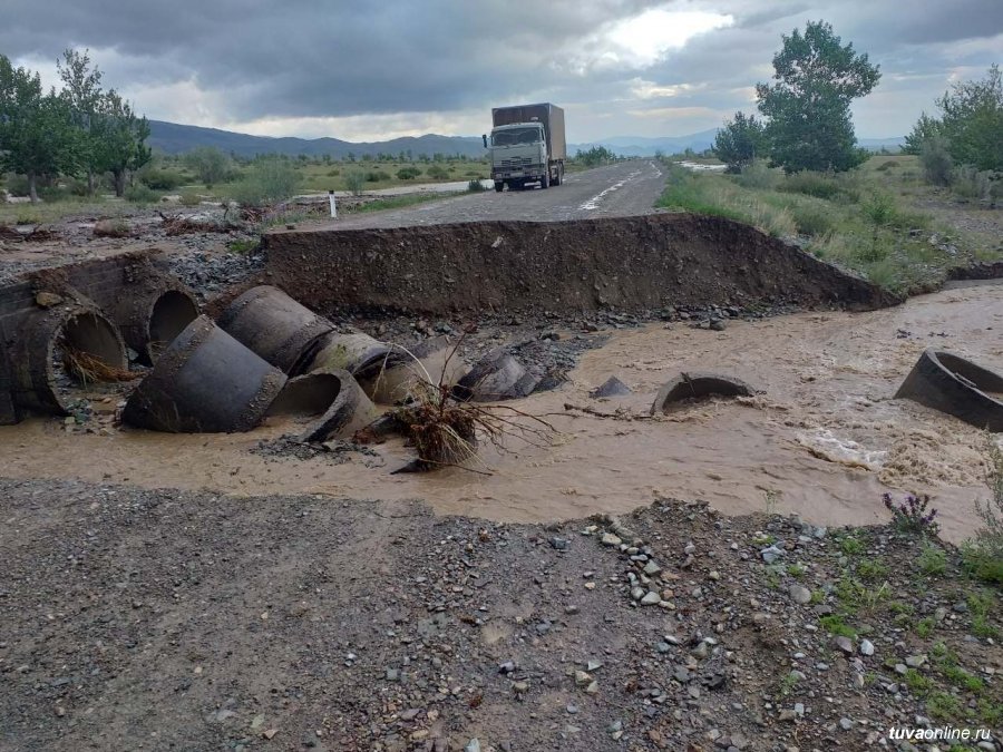 Как сообщает Министерство дорожно-транспортного комплекса республики Тыва, в связи с резким повышением уровня воды на реках республики на территориях 10 кожуунов Республики Тыва (Бай-Тайгинский, Барун-Хемчикский, Дзун-Хемчикский, Тес-Хемчикский, Монгун-Тайгинский, Чеди-Хольский, Овюрский, Улуг-Хемский, Чаа-Хольский, Сут-Хольский) всего на территории Республики Тыва размыто 45 участков автодорог, 17 мостов. На аварийно-восстановительных работах задействовано 77 единиц техники и 211 человек.