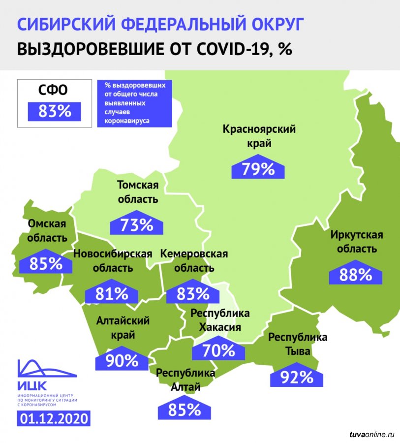 Эпидситуация по коронавирусу в Республике Тыва по данным Управления Роспотребнадзора по РТ и Минздрава РТ на 1 декабря 2020 г.