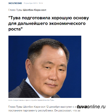 Глава Тувы Шолбан Кара-оол 12 декабря выступил с ежегодным посланием парламенту республики. Он рассказал, что за последние 15 лет экономика региона выросла, практически, пятикратно, однако, впереди у правительства - еще немало задач, которые необходимо решить на пути к устойчивому развитию территории.