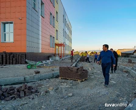 В ходе проверки Владислав Ховалыг лично пообщался со строителями, которые выполняют работы по укладке брусчатки вокруг здания школы, проверил наличие строительных материалов и расспросил о выплатах заработной платы.