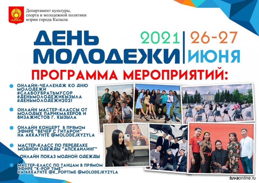 Молодежь Кызыла призывают отметить предстоящий День молодежи активным участием в мероприятиях, подготовленных Департаментом культуры, спорта и молодежной политики мэрии Кызыла. В программу входит онлайн-челлендж #слабоубратьмусор. Желающие могут поучаствовать в традиционном обновлении надписи на горе Догээ. Сбор 25 июня в 9:30 на парковке мэрии города Кызыла.
