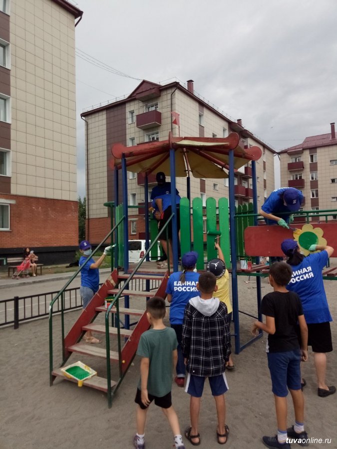 Депутаты и активисты «Единой России» продолжают обновлять дворовые и спортивные площадки Кызыла. Акция приурочена к празднованию 100-летия ТНР.