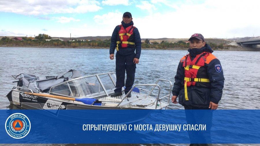 Обращение от жителей о прыгнувшей с моста девушке поступило на пульт Системы-112 сегодня, 27 сентября в 10:25 утра. На место происшествия оперативно выдвинулась оперативная группа спасателей поисково-спасательного отдела Службы ГО и ЧС Республики Тыва Иргит Мерген и Куулар Базыр.