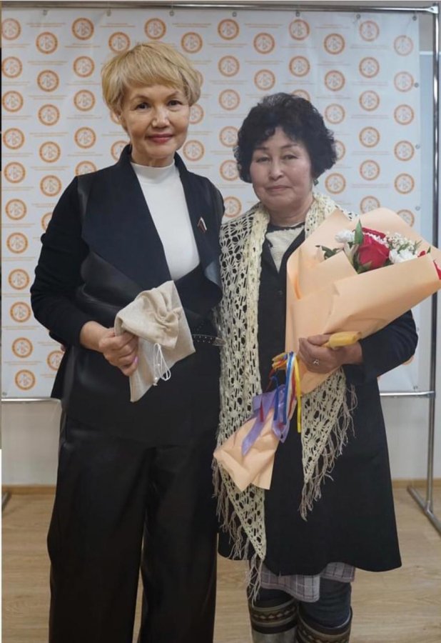 Награду Совета Федерации сенатор Дина Оюн вручила вдове композитора и хоомейжи Чечек Сагдыевне.