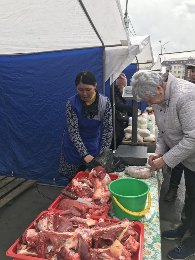 В минувшие выходные в Кызыла прошла сельскохозяйственная ярмарка, организованная Фондом развития фермерского бизнеса и сельхозкооперативов РТ. Всего в ярмарке приняли участие производители из пяти районов республики: Овюрского кожууна – (баранина и национальная одежда); Монгун-Тайгинского кожууна – (мясо сарлыка); Дзун-Хемчикского кожууна – (баранина, национальная одежда); Тес-Хемского кожууна – 2 человека (говядина); Тандинского кожууна – 2 участника (дикоросы, компот, варенья, борщовая заправка, полуфабрикаты, холодец и др.); Кызылского кожууна – с продукцией из облепихи и национальной одеждой.