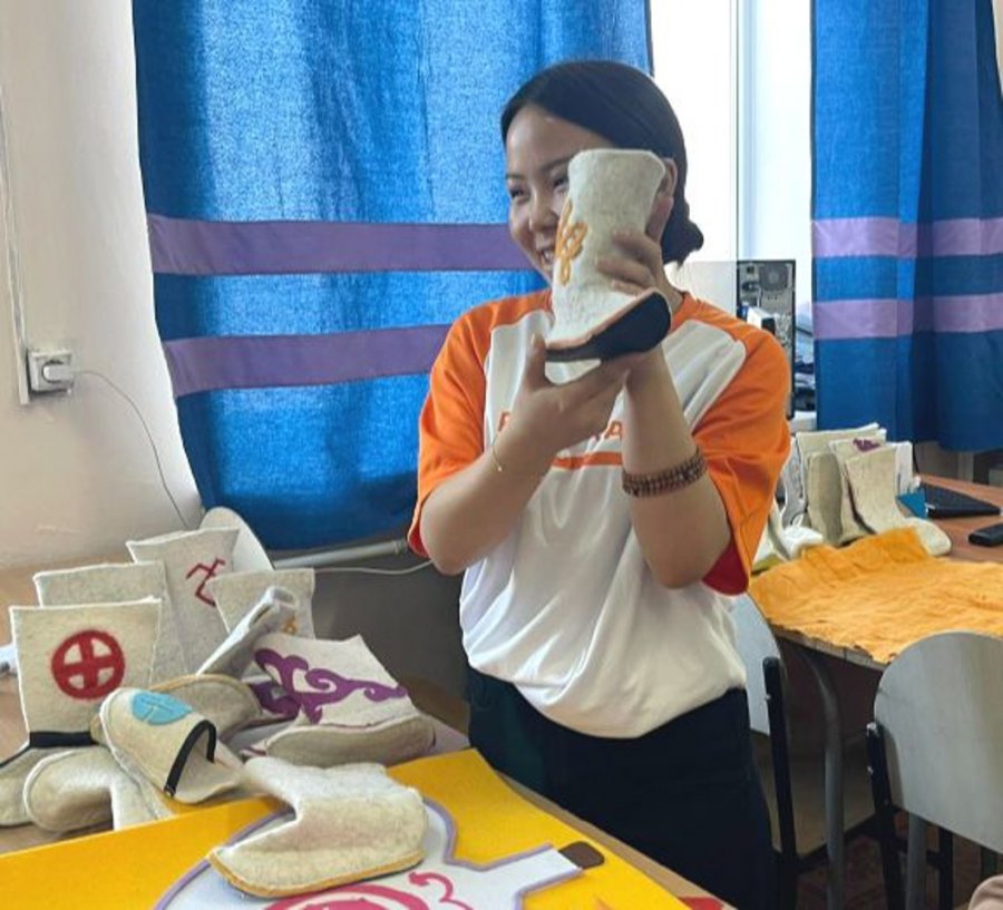 «Сегодня войлок один из самых старых, традиционных материалов, вновь приобретает актуальность. Полузабытое народное ремесло последнее десятилетие возрождается в модной индустрии, – рассказывает мастер по валянию Аяна Донгак. – Работа над изготовлением изделий из войлока открывает большие возможности для развития интереса у молодежи к декоративно-прикладному и народному искусству Республики Тыва, навыков работы с различными материалами, художественного вкуса и творческой активности, развития мелкой моторики пальцев рук».