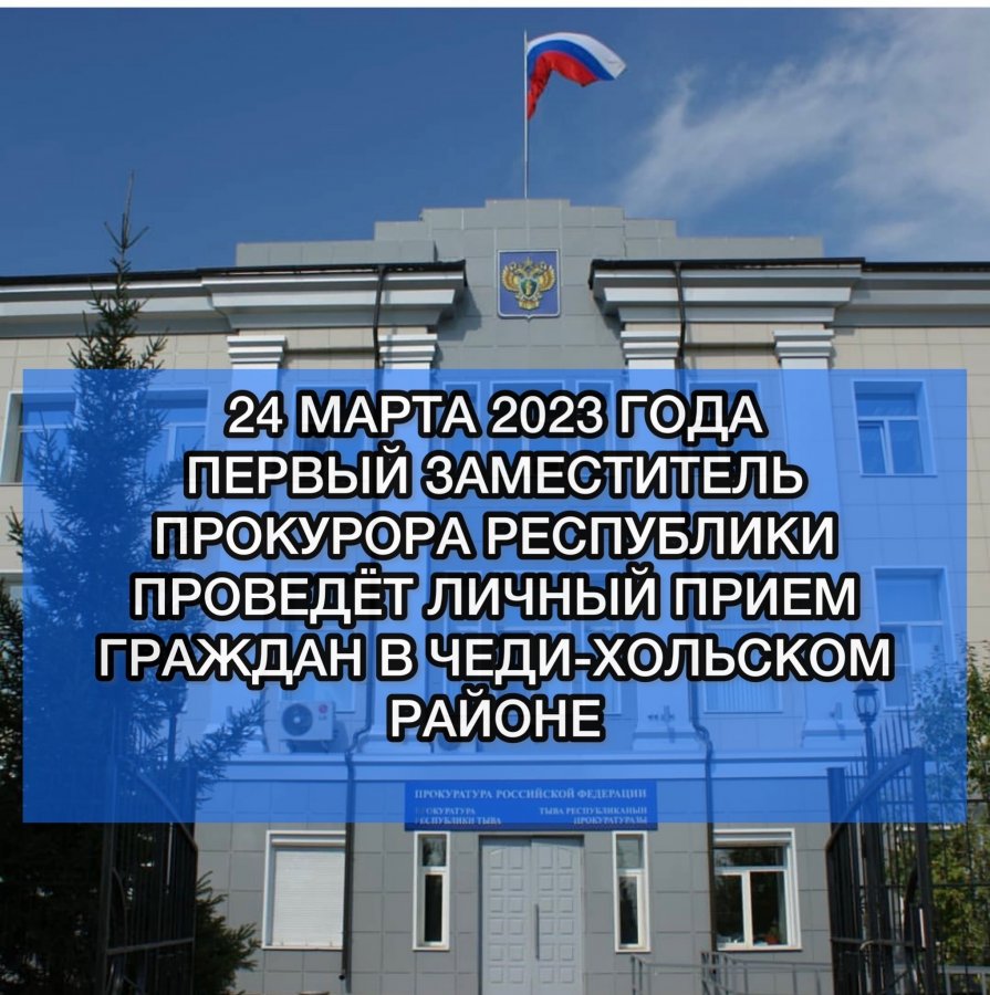 24 марта 2023 года первый заместитель прокурора Республики Тыва Владимир Большунов проведет личный прием граждан Чеди-Хольском районе.
