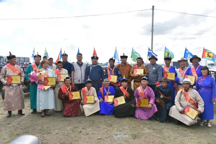 В юрточном городке Тос-Булак, развернутом в дни Наадыма на 9 км к югу от Кызыла, прошло торжественное вручение наград и призов чемпионам и передовикам Наадыма-2023 от Главы Тувы Владиславa Ховалыгa.