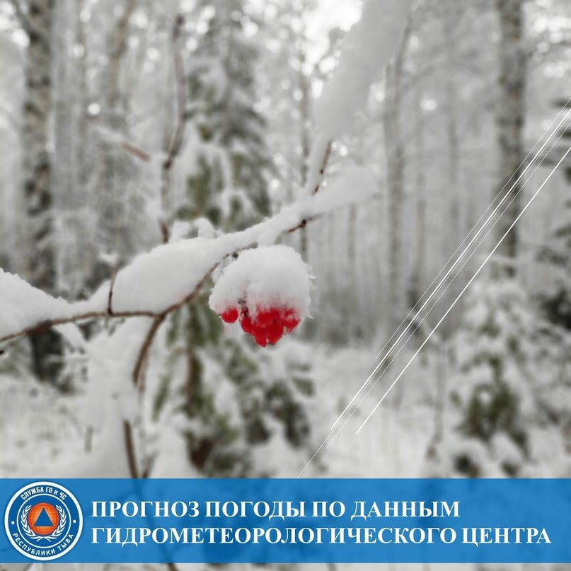 По республике: облачно с прояснениями, небольшой, местами умеренный снег. Ветер западный 2-7 м/с, местами порывы ночью до 14 м/с, днем до 17 м/с, местами метель. Температура воздуха ночью -14,-19°, местами -23,-28°. Температура воздуха днём -9,-14°, местами -1,-6°. На дорогах гололедица.