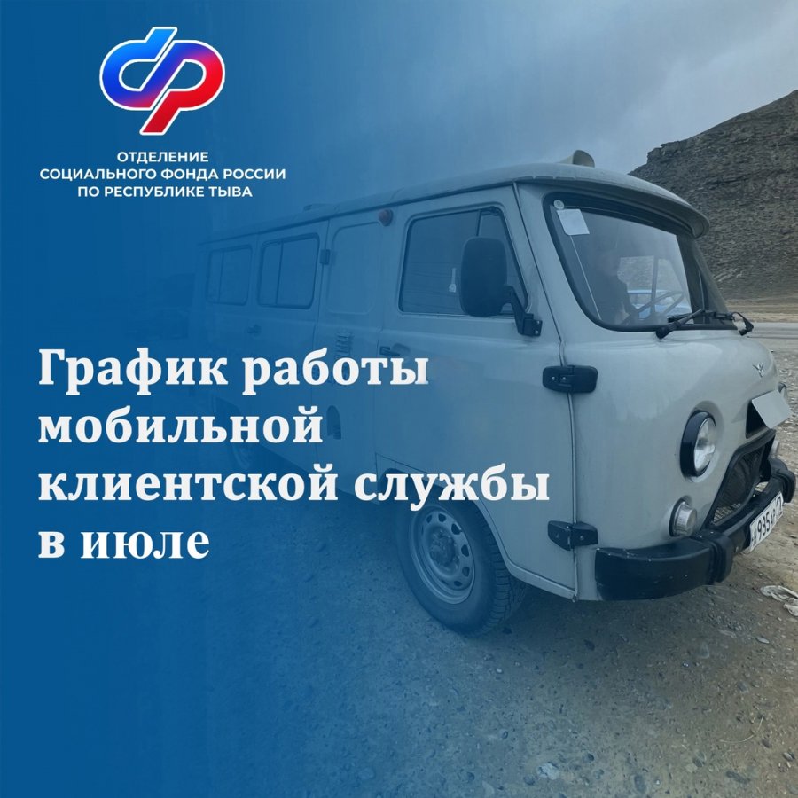 В июле выезды мобильного офиса ОСФР по Республике Тыва будут осуществляться по следующему графику: