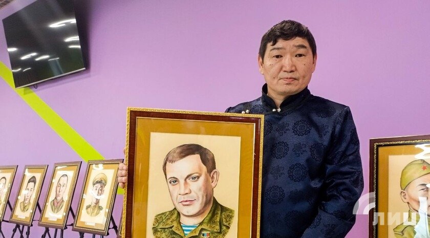 «Здесь выставлено 210 портретов. Десять героев СВО, многих я знал лично, десять героев ВОВ и тувинские добровольцы, в 1944 году, освобождавшие населенные пункты западной Украины от фашистов», — рассказал художник.