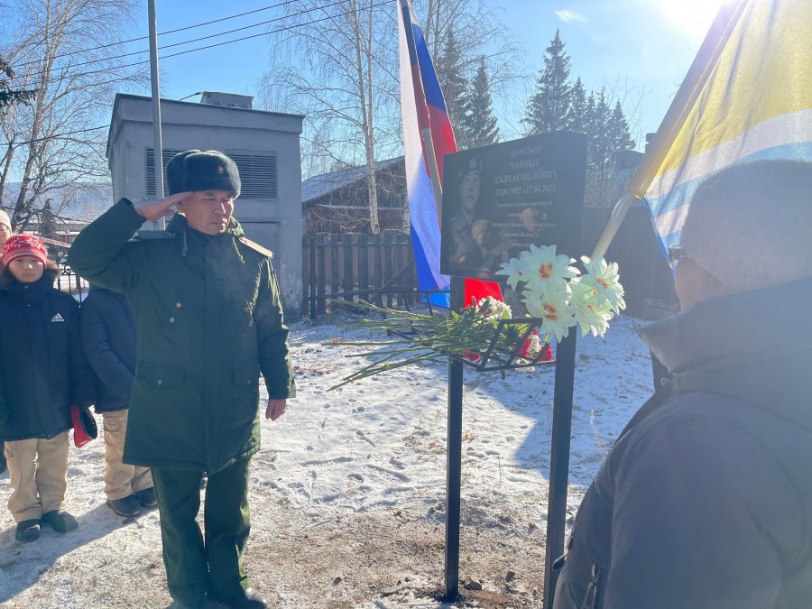 В селе Хову-Аксы Чеди-Хольского района состоялось торжественное открытие мемориальной доски в честь земляка сельчан, Дамдына Чанныка Салчак-ооловича, погибшего при исполнении воинского долга в специальной военной операции на территории Донецкой Народной Республики.