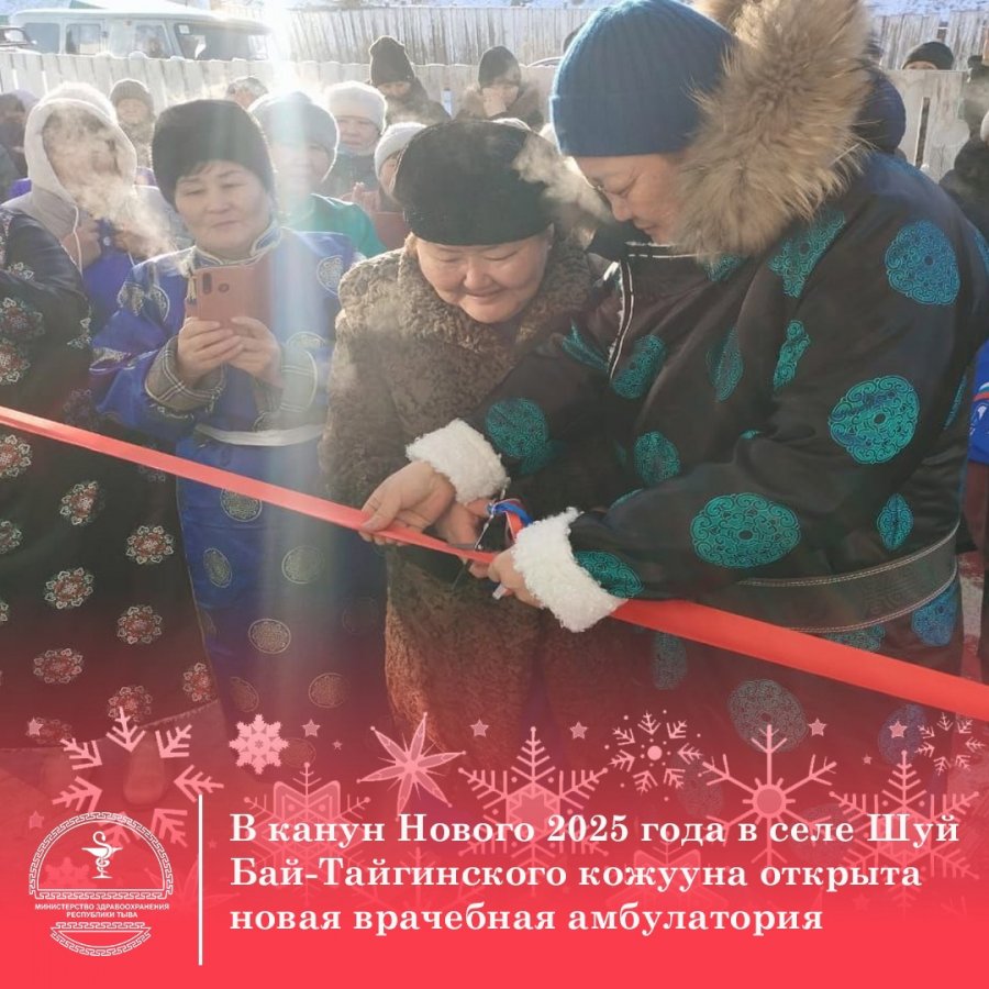 Сегодня с участием министра здравоохранения Тувы Анатолия Югая состоялась торжественная церемония открытия врачебной амбулатории в селе Шуй Бай-Тайгинского кожууна. Врачебная амбулатория построена по программе модернизации первичного звена здравоохранения национального проекта «Здравоохранение» по типовому проекту из клееного бруса с современной отопительной системой и подачей горячей и холодной воды.