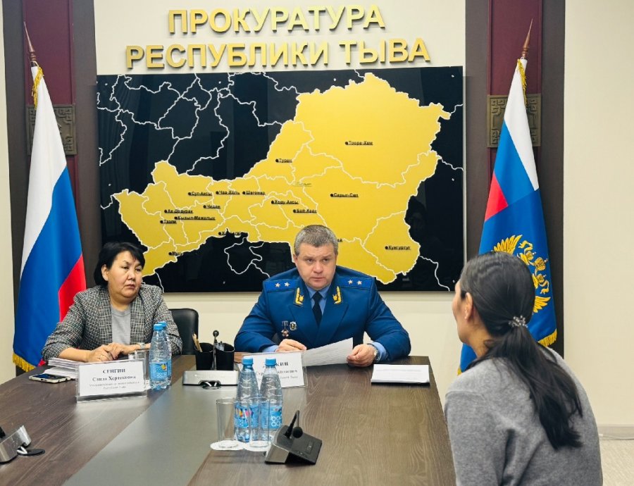 Прокурор республики Сергей Дябкин совместно с Уполномоченным по правам ребенка в Республике Тыва Саидой Сенгии провел личный прием граждан по вопросам защиты прав несовершеннолетних. Поводом для обращения местных жителей послужили нарушения законодательства в сфере образования и здравоохранения, а также непринятия процессуального решения по уголовному делу и другие.