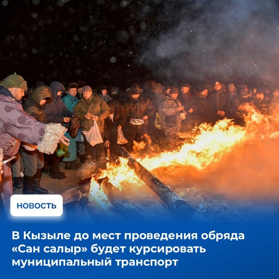 До мест проведения обряда «Сан салыр», который будет проводиться 1 марта с первыми лучами солнца на возвышенностях, будет курсировать муниципальный транспорт. Сан салыр — это обряд возжигания ритуального огня с подношением ему белой пищи, который является важной частью празднования Шагаа в Туве, передает telegram-канал Тува-онлайн. В ознаменование начала всего нового, его совершают на возвышенностях перед самым наступлением рассвета, когда тьма уступает место солнцу.