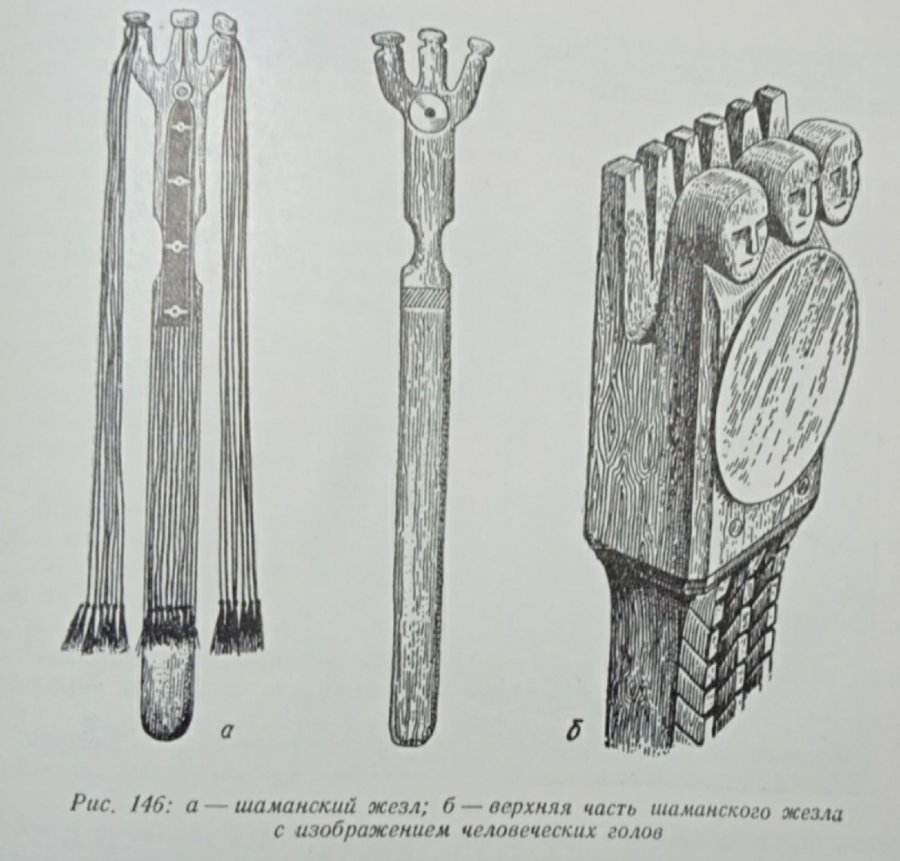 Талант С.И.Вайнштейна как художника можно увидеть на рисунках, где изображены сложные предметы – шаманские принадлежности. Так, на рис. 146 ученый точно нарисовал шаманский жезл, особенно его верхнюю часть с изображением человеческих голов, также интересен на рис. 151, 152, 153, 154 шаманский плащ, шаманский нагрудник, обувь и ээрен.