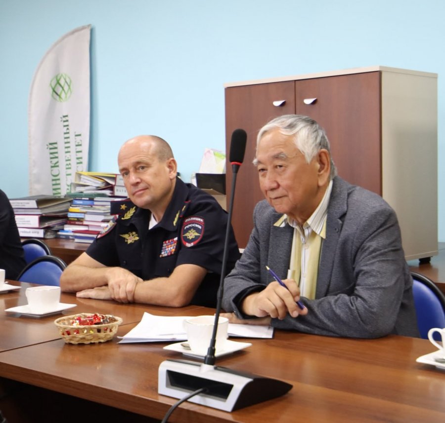 Министр внутренних дел Тувы генерал-майор полиции Юрий Завьялов встретился с руководством Тувинского государственного университета и обсудил вопросы реализации Указа Президента Российской Федерации «О подготовке кадров для органов внутренних дел Российской Федерации по договорам на обучение»